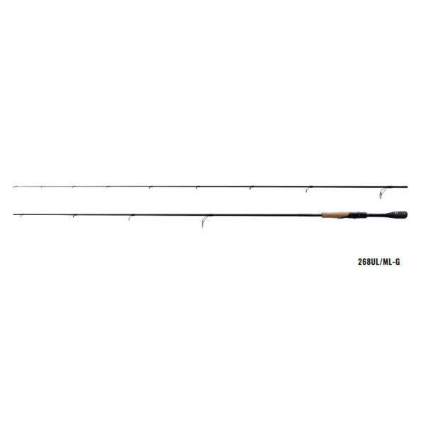 さらなる深化を見せた一竿一様。真の“闘うロッド”を追った第三世代グロリアス。 トーナメントという極限の世界で勝つために産声を上げたポイズングロリアスが、さらなる進化を遂げて生まれ変わりました。レーシングロッドの第三世代モデルは、トップトーナメントシーンのみならず全国のローカルフィールド特性を解析し、新たなるスタンダードアクションを追求。スパイラルXコアをはじめとする最新テクノロジーを駆使し、ルアーごとに異なる操作に基づく「真の軽さ」を数値的根拠によって導き出すとともに、より深化したNEW UBD(アルティメットブランクスデザイン)によってシャープさを維持したまま素材のつながりを円滑化。道具としての理想形がここに。新時代の「勝つロッド」の誕生です。268UL/ML-G 「瀕死のベイトフィッシュと昆虫類」を演出し、スレきったバスの口を開く切り札として注目される水面ピクピクアクション。一定のストロークで振り続けるためのしなやかさと、吸い込みバイトを「垂直方向のノセ性能」で獲る至極の一竿。