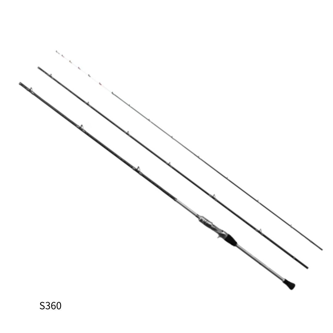 品番:S360 全長(ft.):11'10" 全長(m):3.6 継ぎ方式:並継 継数(本):3 仕舞寸法(cm):125 先径(mm):1 錘負荷(号):8-40 リールシート位置(mm):330 リールシートタイプ:DOWNLOCK カーボン含有率(%):98.7 商品コード:245878