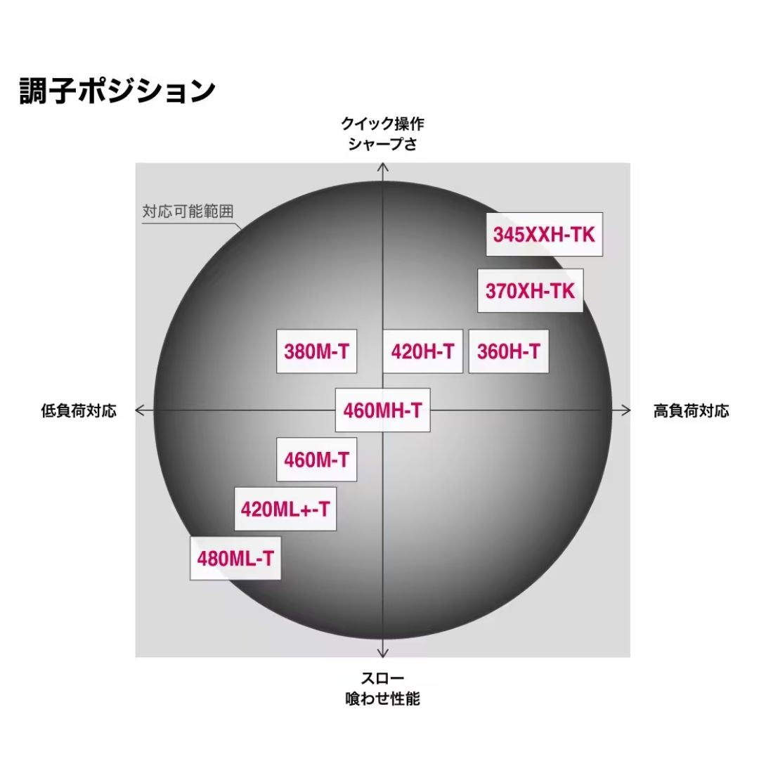 軽快操作のためにそれぞれの穂先と調子を新設計し、エサとルアーの境界線を作らないスペックで楽しみ方は無限大! 2024年、船・筏などでの取り回しに優れたレングスと初となるパワーランク設定(1.2号相当)の420ML+-T、アキアジやイシダイのフカセ、磯ヒラスズキなどに対応する370XH-TK、60gまでのジグがロングキャストできる345XXH-TKの3機種もあらたにラインナップ。
