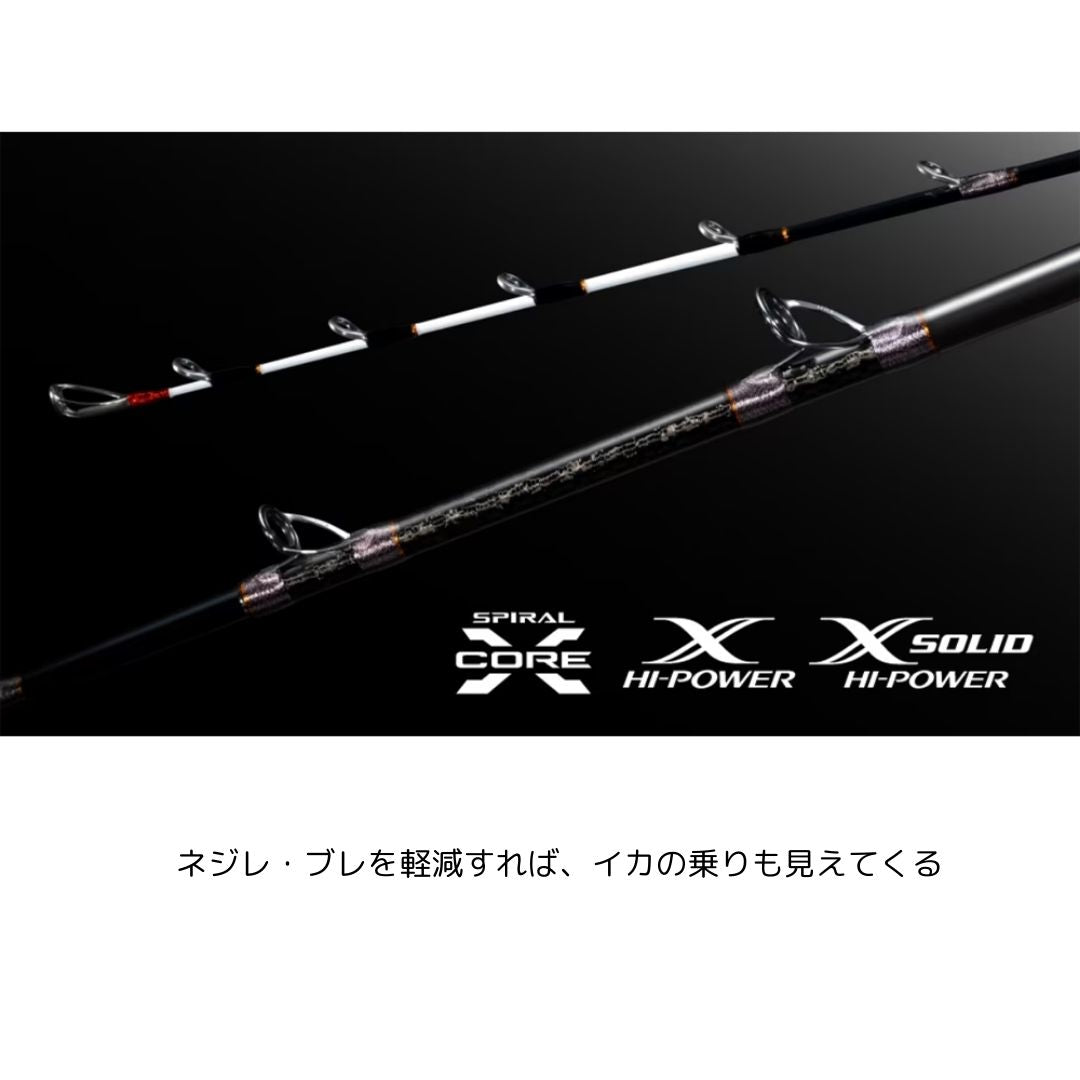 スパイラルXコア+ハイパワーXの採用によりシャープなシャクリが可能に。加えて穂先にはハイパワーXソリッドを搭載したことで穂先のブレが低減、イカのサワリをより鮮明に伝えます。