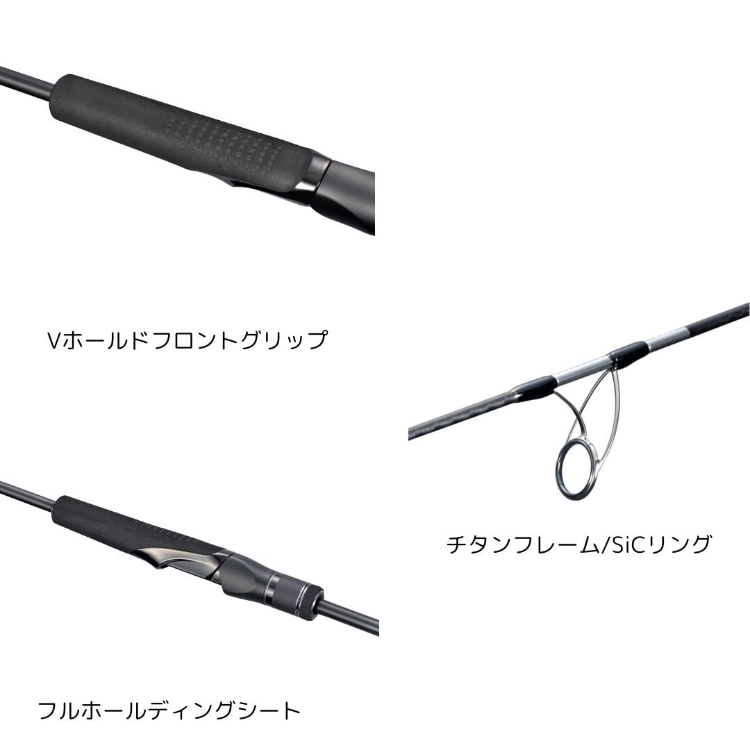 曲げ込めば強靭なバットが真価を発揮し、ワイドなスライドアクションを演出できる対応力も備えている。この2シリーズともに、ブランクスを徹底的に細経化して全身が曲がって機能するようバランスを突き詰め、より少ない力でジグを操れる高次元のジャーク性能を達成。