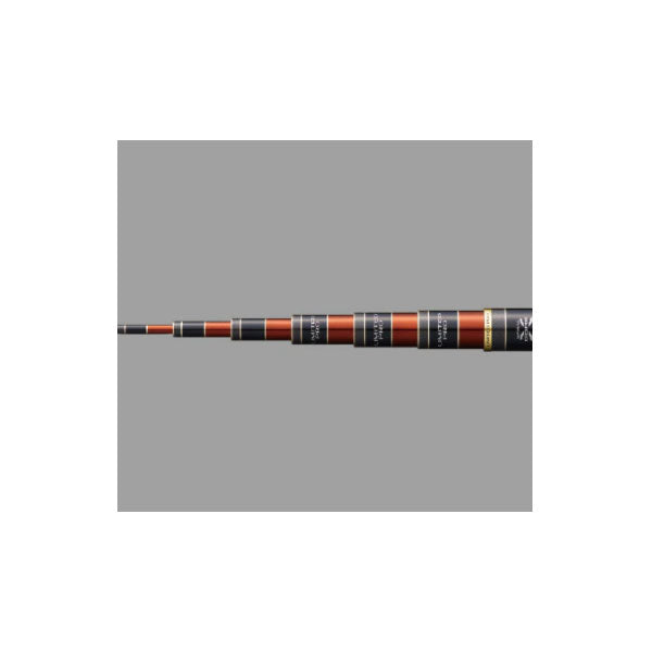 品番 | 全長(m) | H表示 | 継数(本) | 仕舞寸法(cm) | 自重(g) | 先径(mm) | 元径(mm) | 適合オモリ(号) | 適合水中糸(ナイロン・号) | 適合水中糸(メタル・号) | カーボン含有率(%) |