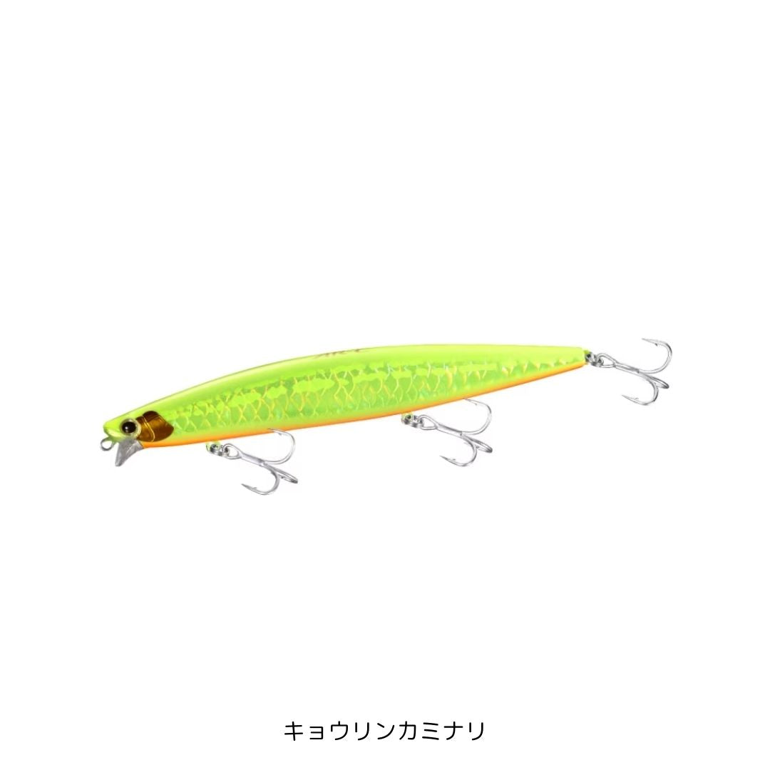 カラー番号:4 カラー:キョウリンカミナリ タイプ:フローティング 全長(mm):149 重量(g):27 飛距離(m):68 スイムフォーム(角度(°)):10 流速スペック(cm/秒):40~ フック:#4 x 3
