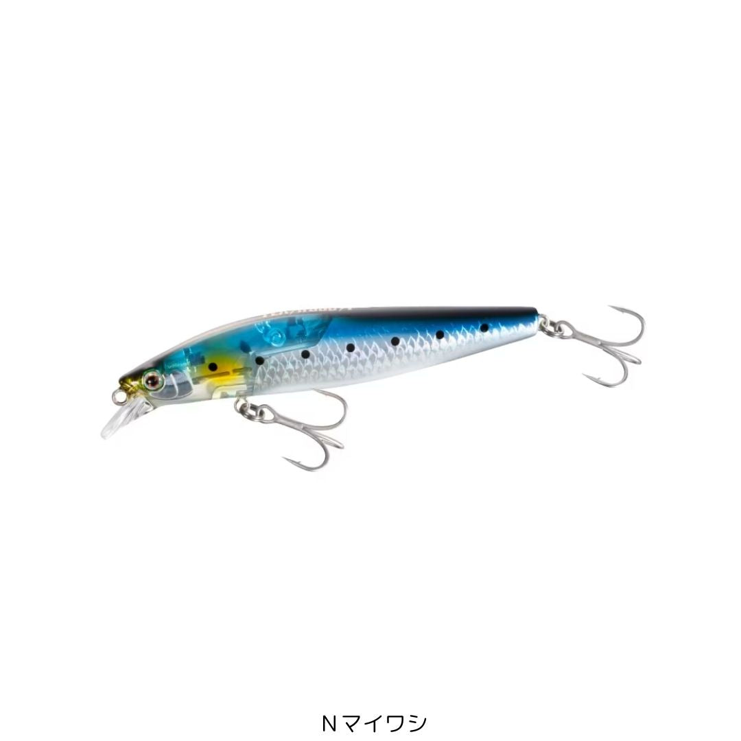 カラー番号:1 カラー:Nマイワシ タイプ:フローティング 全長(mm):99 重量(g):14 飛距離(m):60 沈降速度:- スイムフォーム(角度(°)):10 流速スペック(cm/秒):50~ フック:#5x2