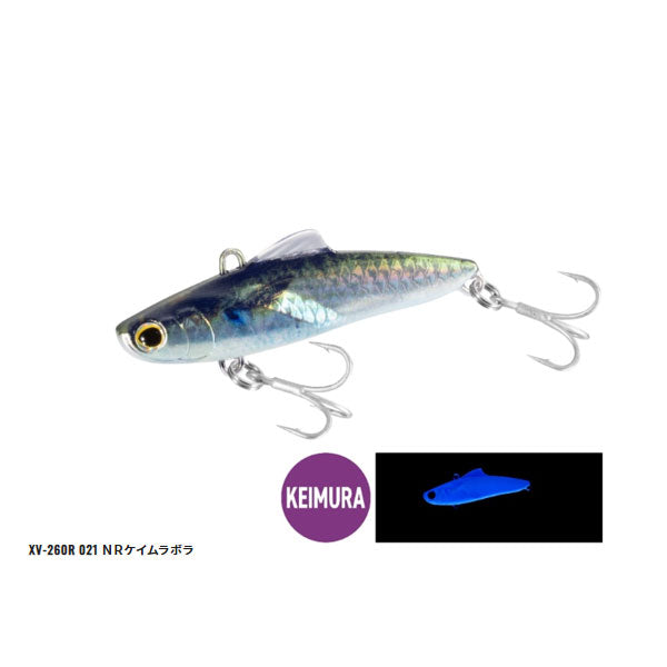 ディープエリアでの立ち上がりにこだわった、ソリッド樹脂ボディのバイブレーション。 ロングキャストした先やディープエリアでも低速リトリーブからしっかり立ち上げるために、あえて流行のメタルプレートではなく、薄肉樹脂ボディを選択。金属よりも軽い比重の素材を選択する事で運動性能を高め、わずかな入力でもボディを振らせる立ち上がりの良さを求めました。ラインアイやウェイトバランスはキャスタビリティを高めるべく、1mm単位で調整を重ね、ロングキャストした先でのフック絡みを防ぐ目的で、キールヘッドデザインを採用しました。