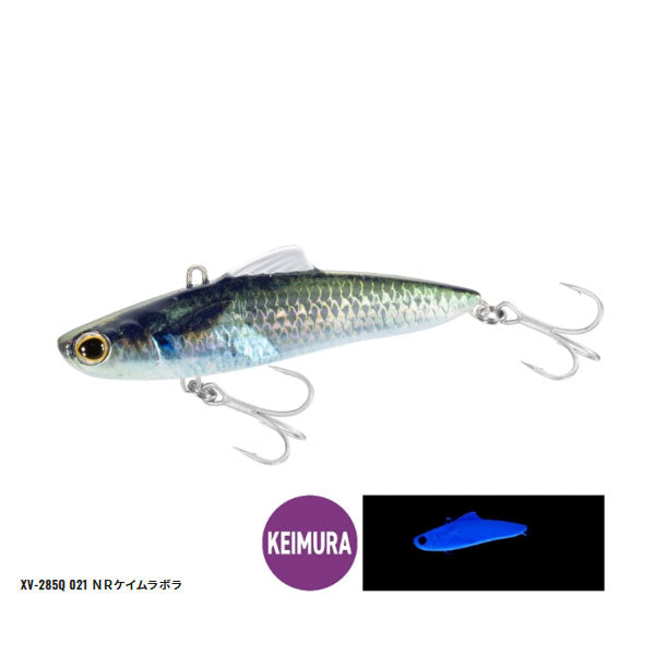 ディープエリアでの立ち上がりにこだわった、ソリッド樹脂ボディのバイブレーション。 ロングキャストした先やディープエリアでも低速リトリーブからしっかり立ち上げるために、あえて流行のメタルプレートではなく、薄肉樹脂ボディを選択。金属よりも軽い比重の素材を選択する事で運動性能を高め、わずかな入力でもボディを振らせる立ち上がりの良さを求めました。ラインアイやウェイトバランスはキャスタビリティを高めるべく、1mm単位で調整を重ね、ロングキャストした先でのフック絡みを防ぐ目的で、キールヘッドデザインを採用しました。