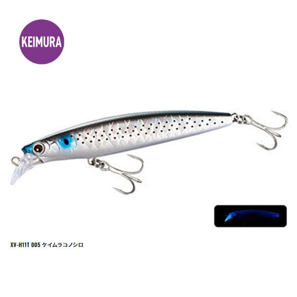 小型ボディに頻発する、鋭い歯でのリーダー切れ対策として、あえて110mmのロングボディを採用。速巻きを想定したバランスで、しっかり追わせてサワラに口を使わせ、リーダー切れを防ぐ目的で設計しています。