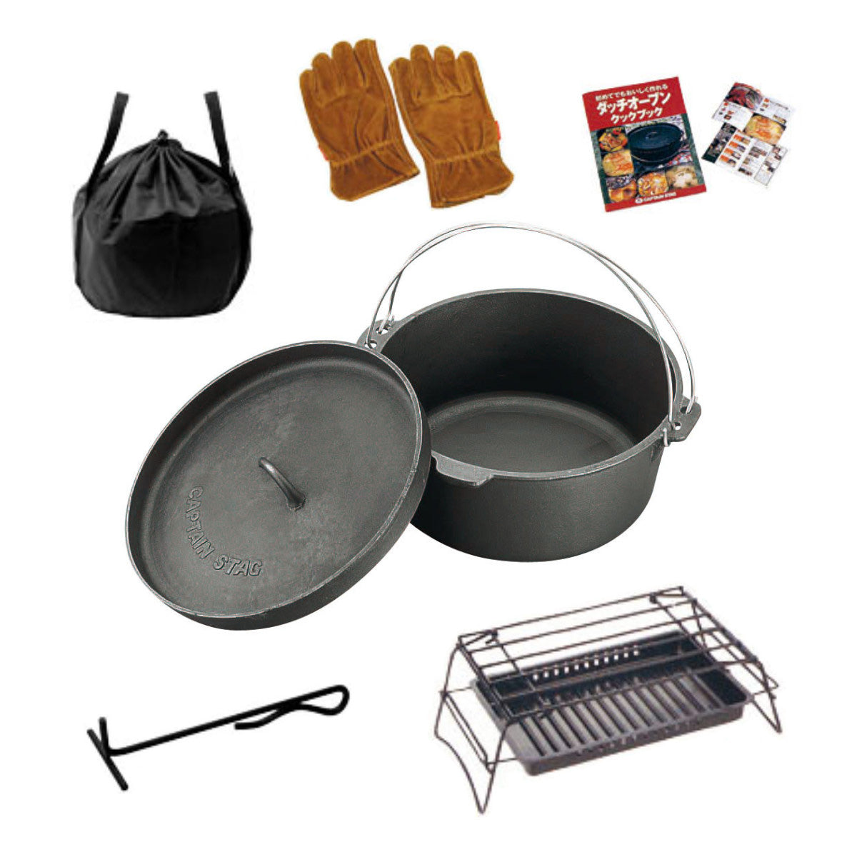 仕様/その他 セット内容/ダッチオーブン25cm×1、リッドリフター×1、ダッチオーブン用収納バッグ×1、スリーウェイダッチオーブンスタンド×1、アウトドアレザーグローブ×1、ダッチオーブンクックブック×1
