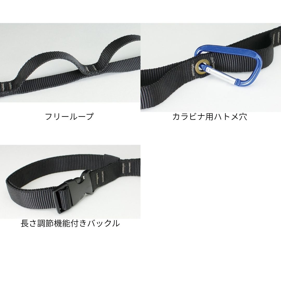 ●長さ調節機能付きバックルでアシストグリップやヘッドレストポールの左右幅が85~112cmの車種に対応。