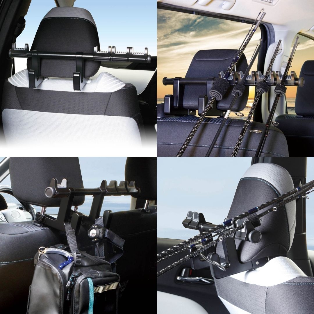 ●釣竿を置くだけ。ヘッドレスト用ロッドホルダー。