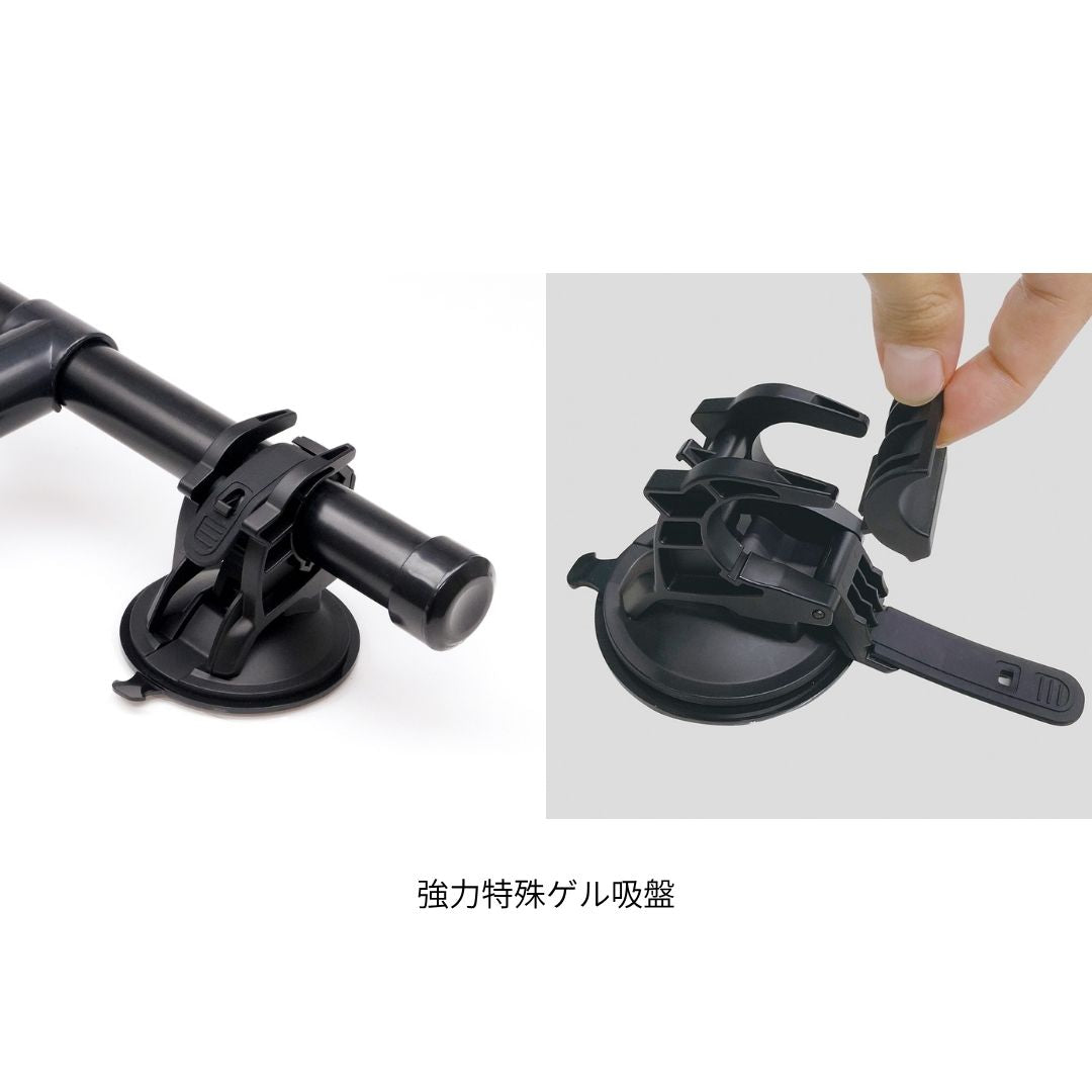 ●内装やガラス面に強力特殊ゲル吸盤で簡単取付。