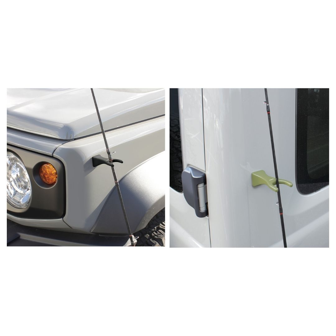 ●駐車場での準備中等、車に貼り付けてロッドの仮置きができる。