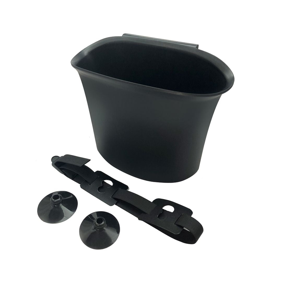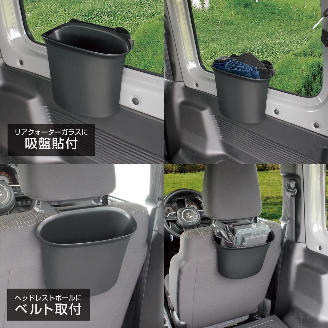 ●リアクォーターガラスに吸盤取付orヘッドレストポールにベルト取付の2つの取付方法から選べる。