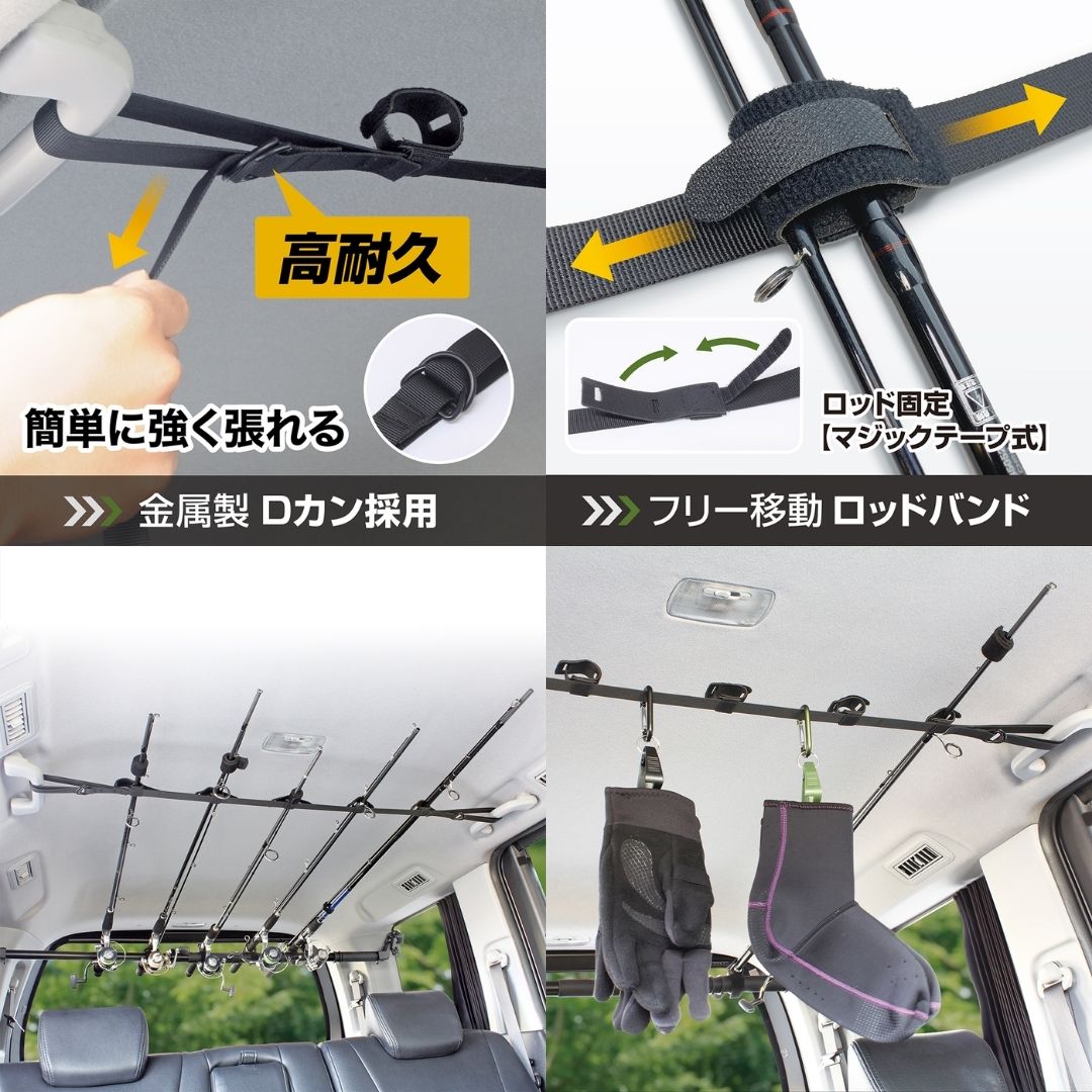 ●天井空間を有効活用。ロッドを5本積載できるロッドベルトです。