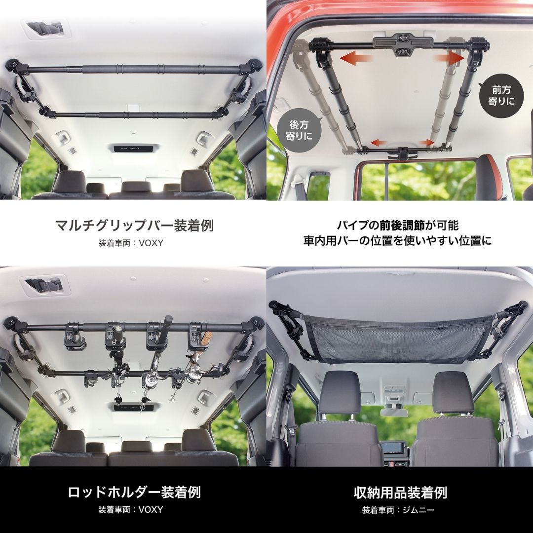 ●ロッドホルダー等、バーが前後に必要なオプション品や収納ネット等の使用が可能になります。