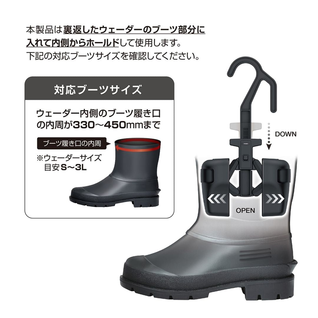 ●ブーツホルダーが可動し広がることで様々なウェーダーのブーツサイズに合わせてホールドできます。