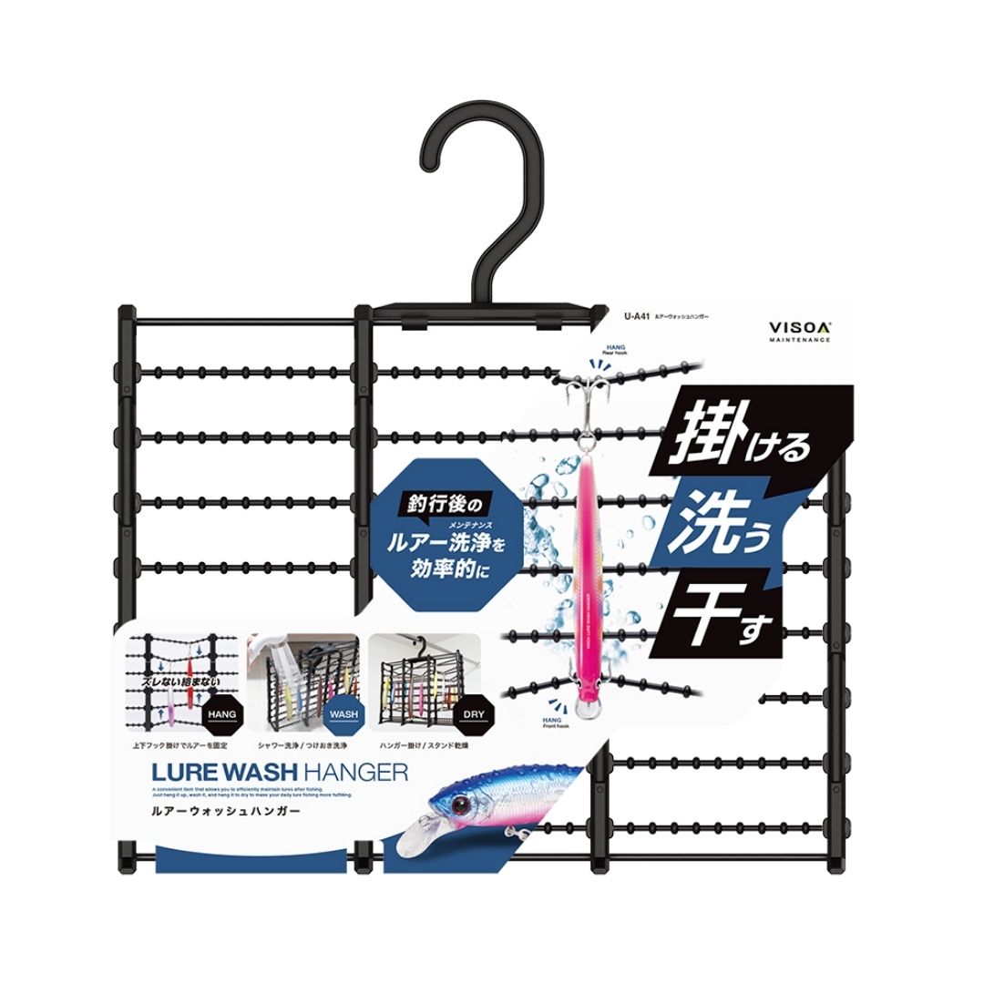 ●掛ける・洗う・干すというルアーメンテナンス行為を効率よく行なえるハンガーです。