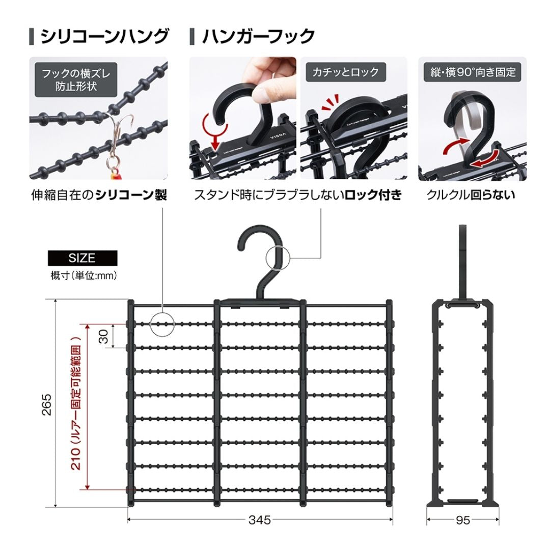 ●ハンガーフックは90°ごとに向きを固定でき、干すスペースに合わせて、縦掛け・横掛けを選んで使用できます。