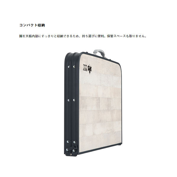 総重量:(約)3.5kg サイズ:(約)幅90×奥行60×高さ68/35cm 収納サイズ:(約)幅64.5×奥行49×高さ8.5cm 耐荷重目安(静止荷重):(約)40kg 主素材:[フレーム]アルミ[天 板]プリント紙化粧合板(ウレタン樹脂塗装)