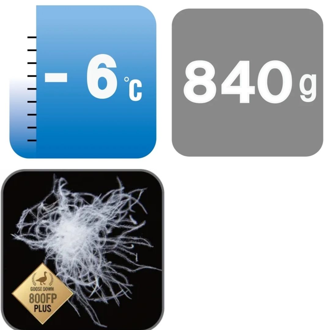セパレートボックス構造を採用し、胸元の保温性を向上させています。最高品質のグースダウンを450g封入しています。