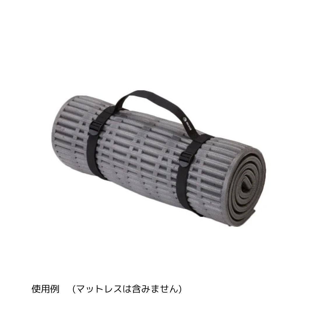 マットレスや長めのギアに最適なストラップです。両サイドのバックル付きのテープで固定し、中央のテープが運搬用のハンドルになります。
