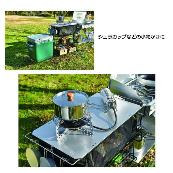 フィールドラックがローテーブルに ・ハンドルが付いてリニューアル ・ハンドルは内側に収納可能 ・シェラカップなどの小物かけに