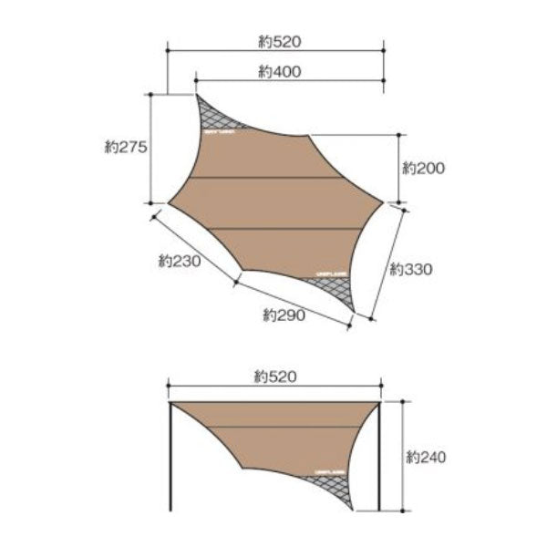 左右非対称デザインとヘヴィーメッシュにより、※ポール、ペグ、ハンマーは付属しておりません誰もが美しく設営できます。