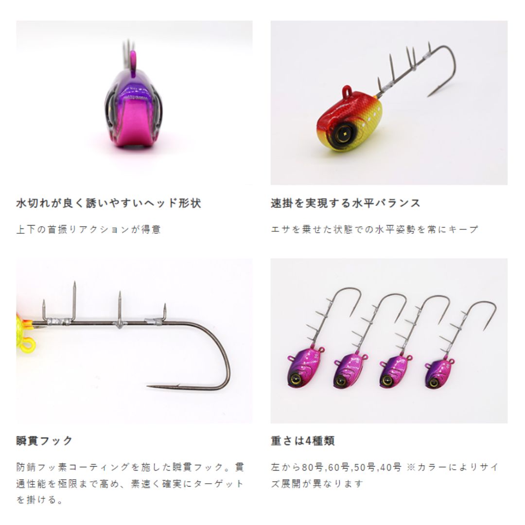 誘い速掛テンヤは水切れが良く、上下の首振りアクションを得意とするヘッド形状が太刀魚を誘い