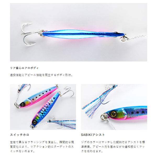 驚異の遠投性能を誇る、ぶっ飛び万能ジグ 遠投性能とアピール力を兼ね添えたジグです。ショアジギングにおいて飛距離は最も大きなアドバンテージのひとつといえます。エースは圧倒的な飛距離を誇り、だれでもかんたんに遠投することが可能です。また、ワンピッチジャークやジャカジャカ巻き、ただ巻き等どんなアクションにも高次元で対応します。