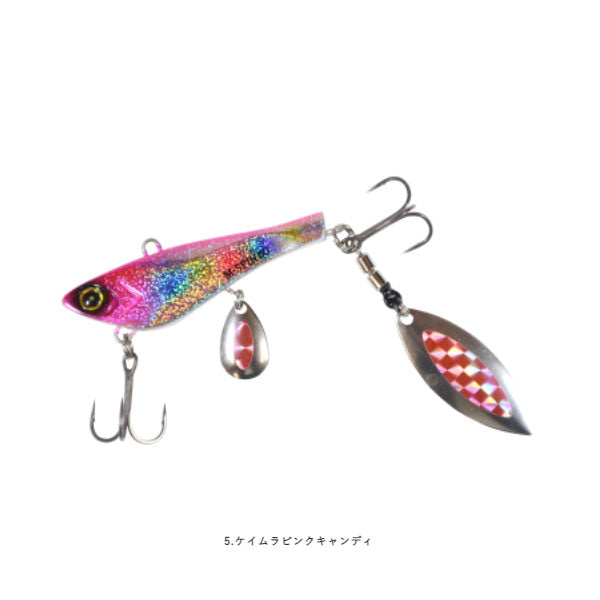 マキマキの名を継承した青物用スピンテールジグ 大型ツインブレードを搭載した、青物用に特化したスピンテールジグです。動きの異なる2枚のブレードを装着。他にはない複雑で強烈なフラッシングが青物に強烈にアピールします。また、最強クラスの太軸トリプルフックを搭載し、大型青物が掛かっても安心です。