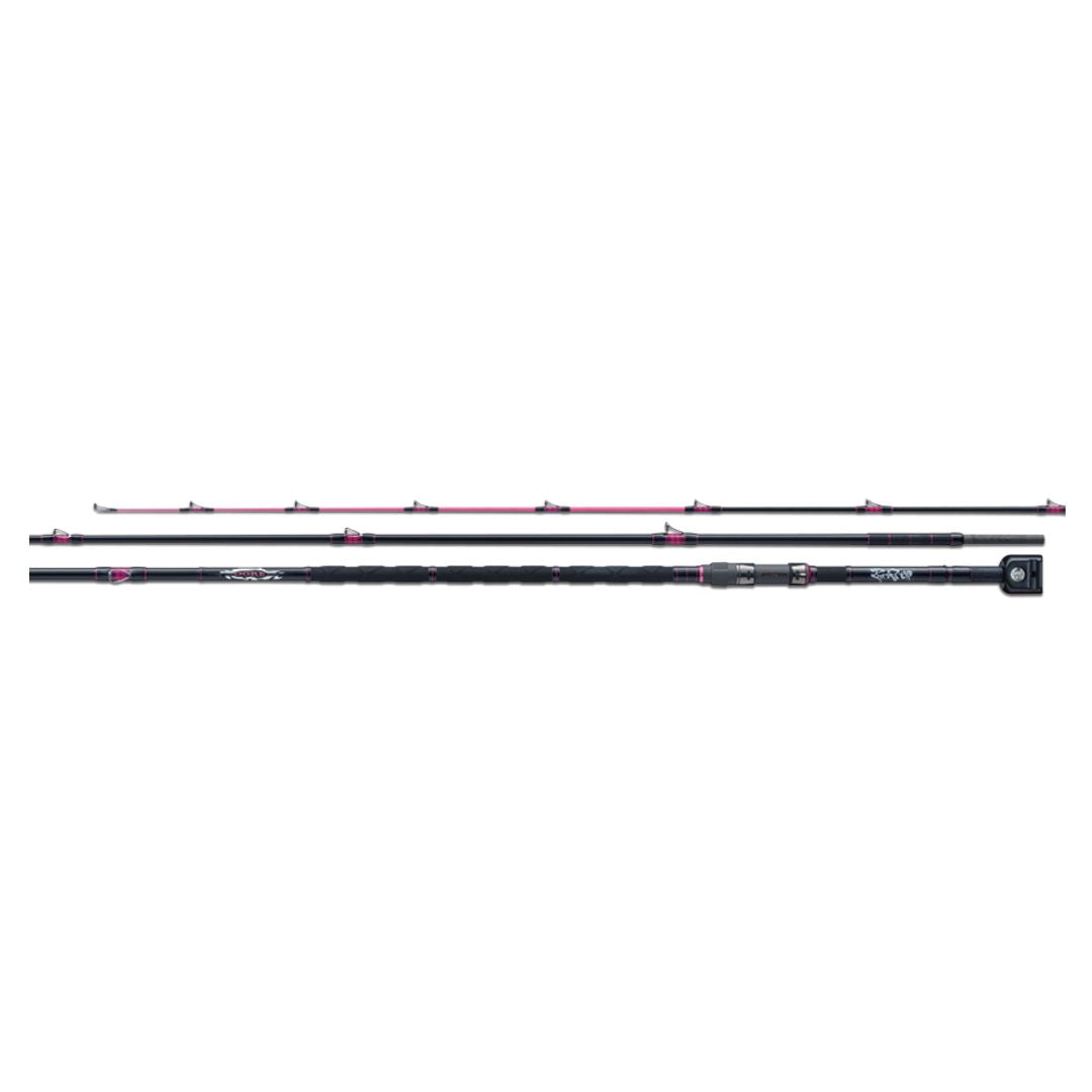 穂先に、グラスとカーボンのチューブラによるコンポジット穂先を採用する事により軽量オモリの使用が可能となり喰い渋った石物の走りに繋げます。
