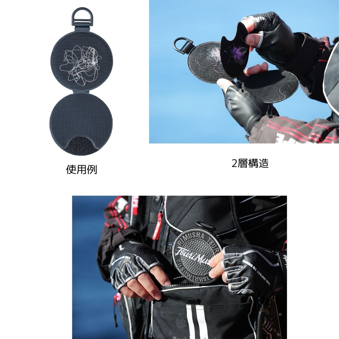 ベストの内ポケットに入り糸くずが引っ付く部分が2層になっている大容量仕様の糸くずキーパー。仕掛けの交換が多くても収まる大きさです。