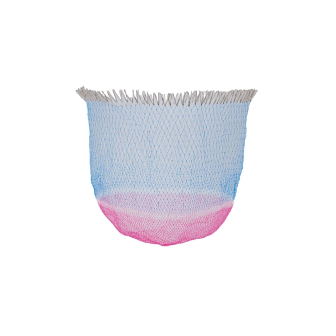 TsuriMushaタモフレーム43cmにジャストフィット。コシのあるナイロンテグス6号を丁寧に手編みで仕上げタモ入れのフィニッシュが正確に。深さ50cm。上段15mm目、中段8mm目、最下部6mm目
