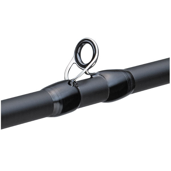 この1本で様々な琵琶湖のオカッパリゲームに対応できるスーパーバーサタイルロッド。 琵琶湖オカッパリゲームにおいて専用ロングロッドを使用したヘビキャロゲームと違い、ビッグベイトやビッグワームから巻モノまでロッド1本で様々なルアーを扱える「圧倒的なバーサタイル性能」を形にしたのが「ブラックスケールBASSHACK」。ロッド開発にあたり、このオカッパリスタイルを得意とする琵琶湖人気Youtuberの「BASSHACK」氏を監修者として起用。アクションはルアーの汎用性に特化させるため、レギュラーファスト(7:3調子)を基準にティップ部分の張りをややマイルドに設定。様々なルアーをキャストしやすく且つ操作しやすいように仕上げた。ブランクス素材については反発力や強度などで一番バランスが良い中弾性カーボン素材を、「低レジン製法」で強制的に樹脂を排除して締め上げることで、魚の引きに合わせて曲がりながら追従して粘る「筋肉質で懐の深いブランクス」を採用している。そしてガイドについては、ビッグベイトなど重いルアーや比較的太いラインを使用した時の負荷、それから薮漕ぎなどによる外部ダメージを考慮して全て強度重視のダブルフット仕様の富士工業社製ステンレスフレームSiC Kガイドを搭載。またロッドバランスはバーサタイルな使用において様々な角度でロッドを操作することを想定し、バランスを水平方向~やや立て気味に意識したセッティングとしている。「ミディアムパワー」の汎用性と「エキストラヘビーアクション」のロッドパワーを両立させた「ブラックスケールBASSHACK」が「+α」の性能(魚を引き出し、掛けて寄せる)を実現しています。